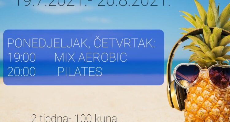 Drage članice, kao i svake godine organiziramo ljetno vježbanje u periodu 19.07.-20.08.2021, 2x tjedno u terminu: 19:00 WORKOUT20:00 PILATES Cijena za 2 tjedna iznosi 100 kn, odnosno 200 kn za 5 tjedana, a predbilježiti se možete na info pultu ili putem: aerobic.sb@gmail.com 🙂