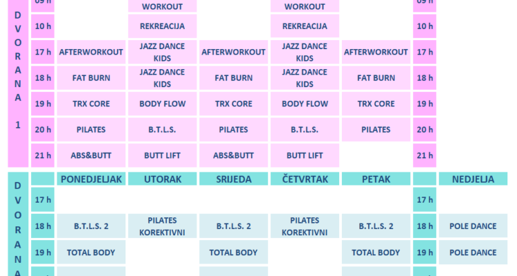 NOVO! RASPORED GRUPNIH TRENINGA